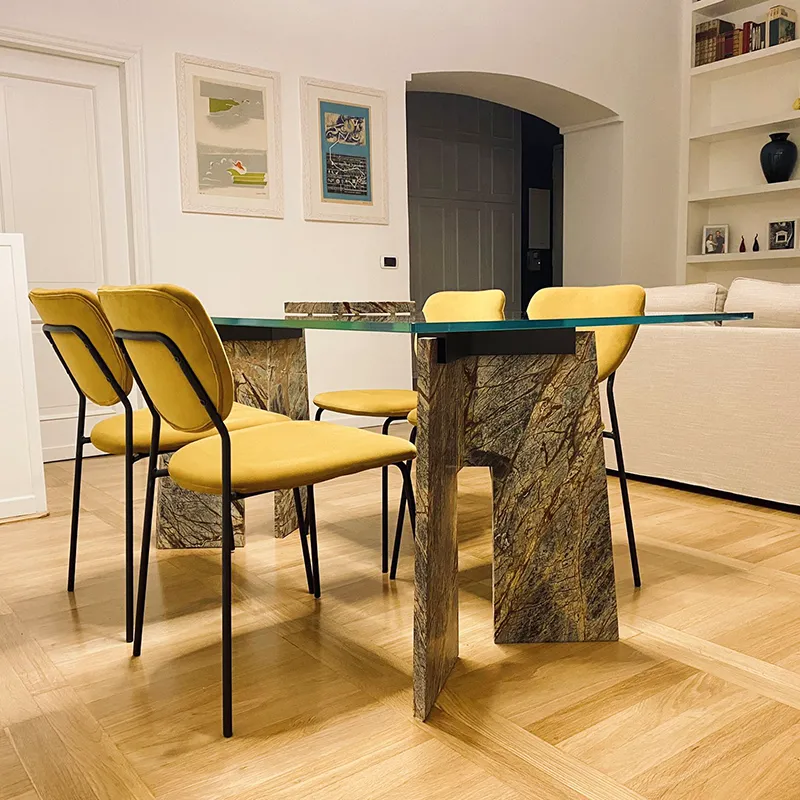 Ogni oggetto, risultato di un processo artigianale di alta qualità, unisce la bellezza imperfetta della pietra a materiali pregiati come legno e metallo, creando pezzi distintivi dal design essenziale. Ogni progetto racconta una storia unica attraverso materie prime selezionate, progettazione attenta e dettagli esclusivi.